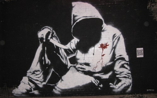 Hace un tiempo que escuché hablar de estos renovados códigos de barras por primera vez, y desde entonces todos me hablan de ellos, los veo por todas partes, así que siguiendo con los códigos QR y para que ver sus muchos y diferentes usos posibles, hoy mostramos un ejemplo llevado a cabo por el graffitero Banksy a quién, por lo visto, también le gusta este sistema de almacenaje de información; al lado de una de sus pinturas, cerca de Waterloo Station en Londres, puso un pequeño código QR que descarga en nuestro teléfono un enlace que nos lleva directamente a la entrada de Banksy en Wikipedia. Me parece una estupenda manera de usar las posibilidades que la tecnología nos brinda. Pero debería haber colocado otro que nos lleve directamente a su página Web, en ella encontramos muchas de sus geniales creaciones. Comenzó en el anonimato porque realizaba una actividad delictiva y posiblemente ahora le viene de perlas que nadie le reconozca, ya que se ha convertido en el graffitero más conocido. Pero es de justicia que uno de los mejores artistas urbanos tenga el reconocimmiento que se merece, lo que no es de justicia son las cantidades de dinero que se llegan a pagar ahora por sus obras. Primero tuvo que esconderse para crear y ahora hay ciudades que se pegarían por tener una de sus obras, paradojas de la vida…