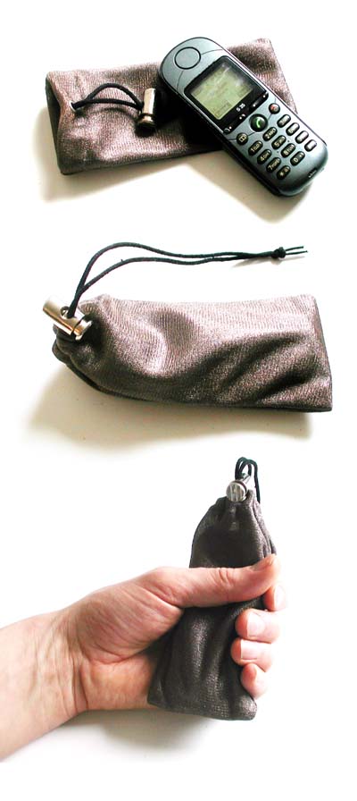 De paso retomamos los medios digitales sensibles a la localización geográfica, osea Locative Media, ya que en muchos de sus proyectos están vinculados a este tema de una u otra forma; por ejemplo su tesis Bits on Location (2001) o Silver Cell (2004). Este último es una instalación que consta de un teléfono móvil y una bolsa que actúa como jaula de Faraday ya que no le permite recibir las señales, por lo que no se puede localizar el teléfono, algo que puede pasar aunque apaguemos nuestro celular…