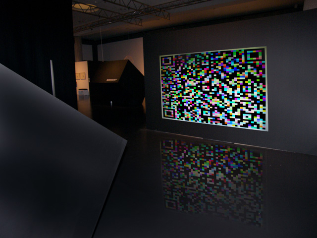 Esta animación interactiva convierte las palabras de los SMSs enviados en formas geométricas, en pesados bloques que vemos caer desde la parte superior de la zona de proyección, que coincide con la fachada del edificio. Las frases se deshacen y las palabras empiezan a mezclarse y aleatoriamente forman nuevas frases, nuevos sentidos.